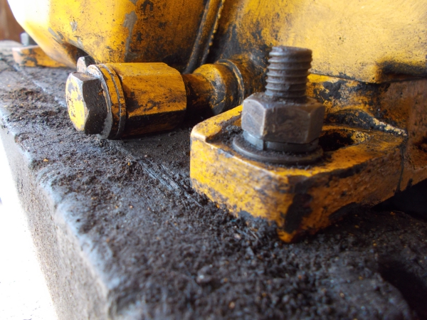 長年の振動と重量のため、エンジンの脚の形に窪んでいます。