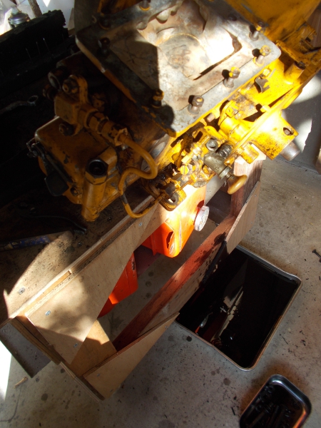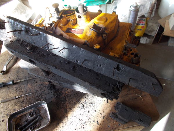 まず角材を二本新調して、エンジンをできるだけ清掃してから