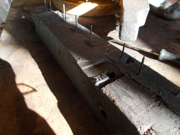 もともとの木台に四角い窪みがたくさんありますが、これは釘抜きを差し込んで